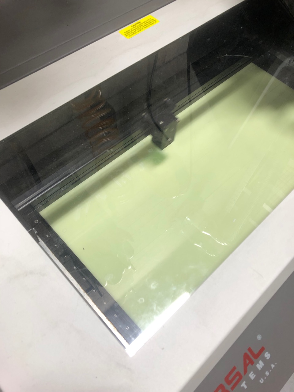 Second burn test (clear acrylic) Bottom is from the first test, later on we used the other side to see what we could accomplish with tape.