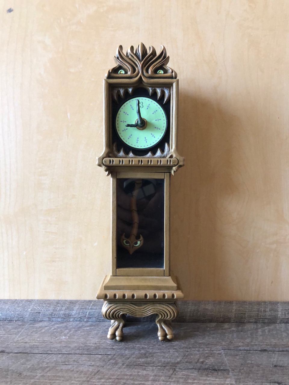 My Haunted Mansion Clock. So, I’m not sure where to start with this. This will be my first big build. A while back I was hitting Disneyland a lot. A sentimental place since as a local socal kid I had spent a lot of time with an annual pass visiting on a whim for years. Now I live a couple hundred miles away from the parks. Although I still get to visit more than most, I miss it. Due to this, and my new love for making stuff, I’d decided to bring a little bit of the parks home with me. My favorite rides, constantly fighting for the number one spot, are Pirates and the Mansion. It’s a bit more difficult to bring subtle yet noticeable nods from Pirates into the home than the Mansion, it seems, after all, the Mansion in itself is a house. I’ve also always been a big fan of watches, clocks, horology in general. So one day I was riding through the Mansion and got the big idea that it might be nice to have a replica of the big grandfather clock in the Mansion hallway. I’ve always wanted a grandfather clock. From there I searched all over (finding a few really wonderful recreations online, some even complete with measurements) but I wanted mine to be a bit more… real. It was really tough to try and accurately estimate the sizes, measurements, or even proportions of the real Mansion clock as it’s only in view for a few seconds, and it’s hard to get the quality photos I needed of it because you have such a limited window. As much as I’d wanted to, I NEVER break down in front of the clock, just everywhere else and even if I were to get a perfect crystal clear photo, I’d still only have a two dimensional photo to scale from. I want this to be perfect… despite the numerous allowances I’ve made in the scaling of my real-world replica of this beautiful clock. In comes the Disney toy Mansion clock replica, my savior. I bought it on my first trip to the parks after its release. This toy clock, paired with the fact that my parents own an actual grandfather clock, should allow me to scale to a very reasonable representation of this clock and turn it into what one may expect to find if this were ‘real’. I’m looking at it in the same way as a cartoon->live action translation, but kinda ‘fantasy world->real world’ translation, I guess. I’m trying to keep it as accurate as possible, but it has a few weird measurements that would make it really odd at full size, so I’m having to compromise a little bit to keep the fantasy clock within real-world clock dimensions. I’m trying to keep the face, accents, base, and all of the important accented parts therein as accurately scaled as I can get them, while lengthening the body and keeping the width based off of my real world clock. I think the body leaves a lot of room for un-noticed compromises to help get the height I want while keeping the width from getting too cartoony. As long as the top box is perfect, I think I can stretch the body a bit to get my height/width proportions perfect on this thing while only making it look a little bit better in the process. — I’ve been working on this project for a little while already and have made a bit of progress so far. I’ve still got a lot of work to do and I’m playing this one really cautious as I don’t want to get each step right the first time. The first few updates will come pretty quickly, but they may slow down a bit after I catch up with myself. I’ll be posting all of my measurements, math, and material sources as I go (and probably in full at the end) for anyone who wants to play along. The toy I’m basing this all on…