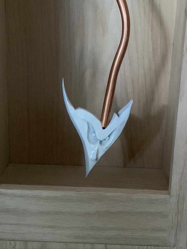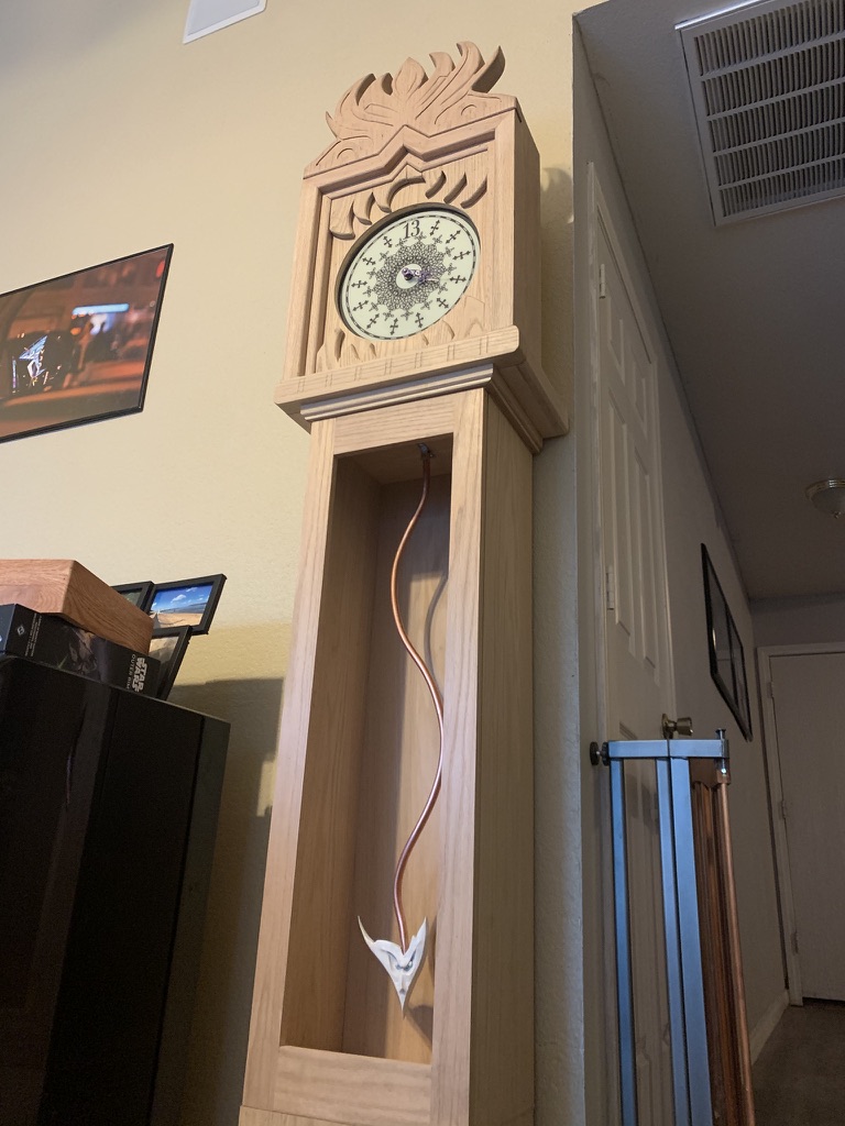 So it’s been a VERY long time since my last post, but I have not stopped working on this thing little by little and I’ve made some real progress I think. Notable but less visible of changes, the door now has hinges. I know the toy uses magnets, and it was an idea, but I think for practicality and safety (this will have glass in it) a more permanent real-world solution would be a little bit better. Next, I’ve worked with someone who’s stuff I’ve seen on IG (I’m not sure if the RPF lead me to them or not, I THINK so?) but their mansion 3D prints are spectacular, Doug and Jessica Hogan (@prototypes_and_pixie_dust) • Instagram photos and videos I’d commissioned the pendulum from them as I don’t think carving that from wood would be at all practical, and since it’ll be covered in brass(?) paint, I think a print is probably the best solution. I couldn’t be happier with this thing, it looks amazing. A couple pics back and forth and this is what we came up with: